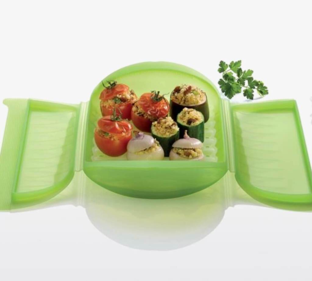 Eten stomen heeft dezelfde voordelen als koken in een slowcooker. Vitamines blijven behouden omdat er niet in water wordt gekookt en de bereidingstijd ook korter is dan bij koken. Ik gebruik het stoommandje van Lékué. Je vult het mandje met een klein laagje water en stopt het op 700 watt voor een paar minuten in de magnetron. Zo heb je in een handomdraai knapperig gestoomde groente boordevol vitamines.